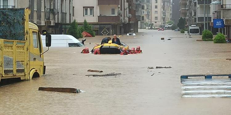 Arama kurtarma ekipleri ilçe merkezinde botlarla vatandaşların yardımına koşarken, mahsur kalan vatandaşlar iş makineleri ve botlarla kurtarıldı.