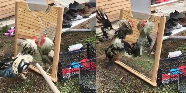 Kendisini ilk kez aynada gören horoz, başka bir horoz sanarak ayna ile kavga etmeye başladı. O anları cep telefonuna kaydeden Yaşar Şimşek daha sonra, horozun kendisine zarar vereceğini düşünerek elinde bulunan çubukla horozu aynanın karşısından güçlükle uzaklaştırdı.
