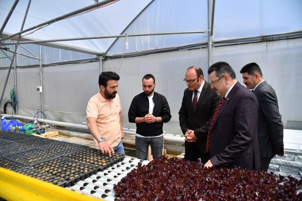Ortahisar Belediye Başkanı Ahmet Metin Genç, Ortahisar Kaymakamı Gürkan Demirkale, Ortahisar İlçe Tarım ve Orman Müdürü Bülent Bayrak ve Ortahisar Ziraat Odası Başkanı Mustafa Bekar ile birlikte Aktoprak Mahallesi’nde dört mühendis tarafından kurulan marul üretim serasında incelemelerde bulundu.