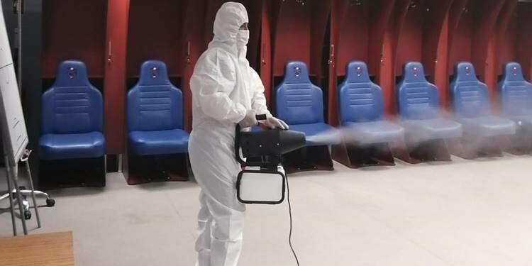 Açıklamada, futbolcular ve müsabaka görevlilerinin kullanacağı soyunma odaları, tribünler, hakem odaları, yedek kulübeleri ve futbolcuların sahaya çıkış yaptığı koridorların büyük bir titizlikle dezenfekte edilerek maça hazır hale getirildiği kaydedildi.