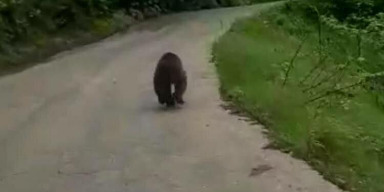 Rize'nin Kalkandere ilçesinde esnaflık yapan Selim Başaran arkadaşı ile ilçenin yüksek kesimlerindeki yaylalarda bulunan arı kovanlarını bakmaya giderken Küçüksu köyü yakınlarında yolda yavru bir ayıya rastladı.