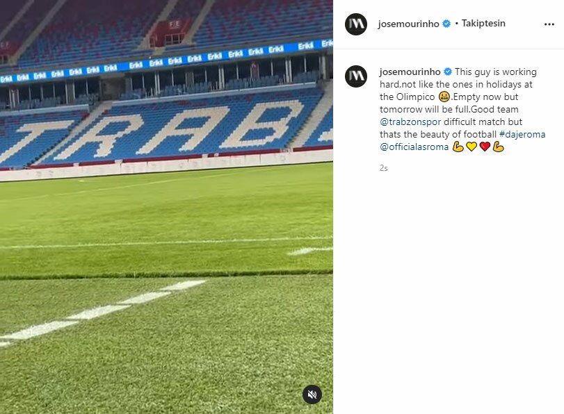 Trabzonspor’un, UEFA Konferans Ligi Play-Off turundaki rakibi Roma’nın Teknik Direktörü Jose Mourinho, Akyazı Stadındaki basın toplantısı öncesinde stadı gezerken, sosyal medya hesabından da bir paylaşım yaptı.
