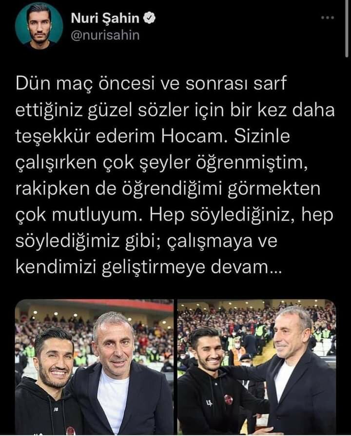 Nuri Şahin'den Abdullah Avcı'ya teşekkür paylaşımı geldi.