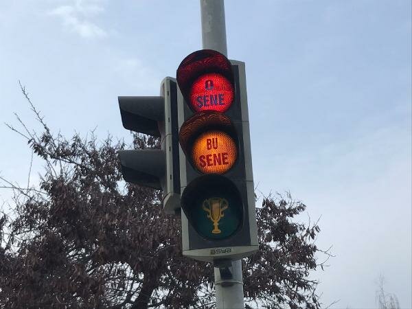 Faroz mahallesi mevkiinde, Devlet Sahil Yolu üzerinde yer alan kırmızı ışığa 'o sene', sarı ışığa 'bu sene' yazısı yapıştırılırken, yeşil ışığa ise şampiyonluk kupası çıkartması eklendi.
