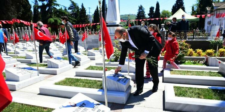 Kur'an-ı Kerim tilavetinin ardından, Trabzon Valisi İsmail Ustaoğlu ve beraberindekiler şehitlerin kabirlerine karanfil bıraktı.