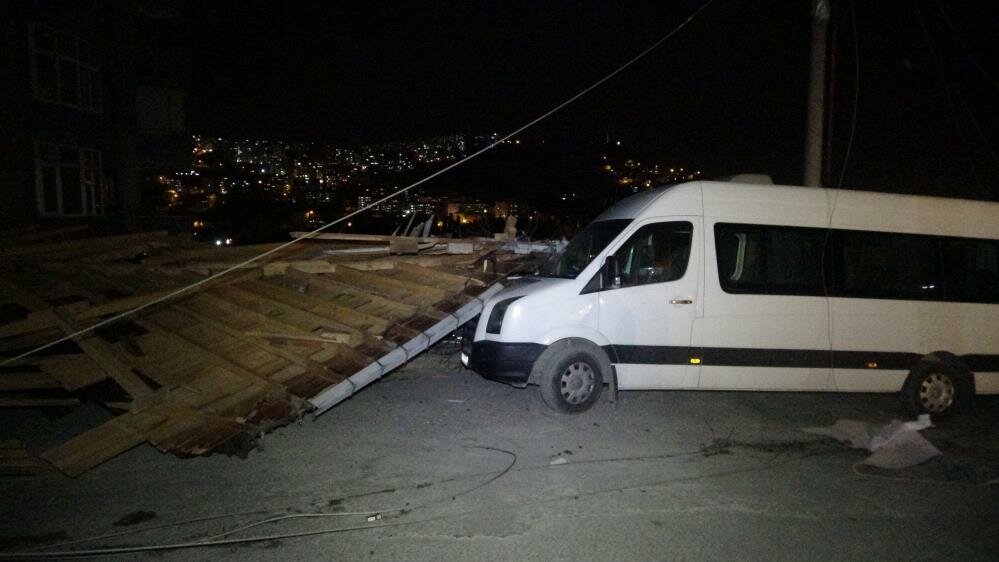 Trabzon'da bugün akşam saatlerinde etkili olmaya başlayan şiddetli fırtına ağaçları devirdi, yerlerinden söktü, çatıları uçurdu. Fırtınada uçan çatı ve kiremitler nedeniyle park halindeki çok sayıda araç zarar gördü.