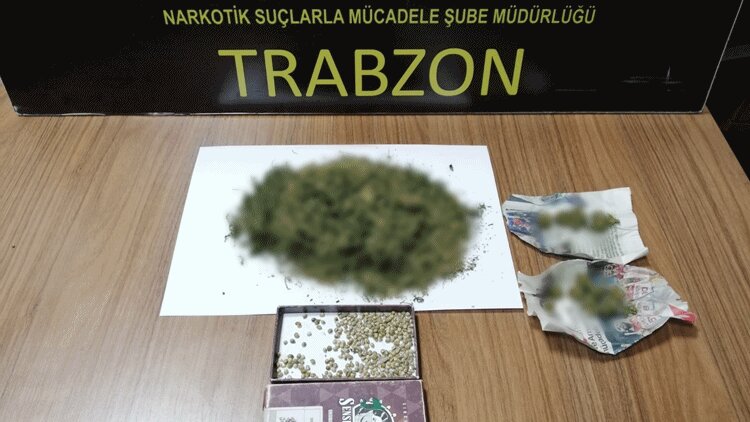 Durum üzerine şahsın ikamet ettiği adrese operasyon düzenleyen Trabzon İl Emniyet Müdürlüğü ekipleri; 43.2 gram esrar ve 5 gram kenevir tohumu ele geçirdi.